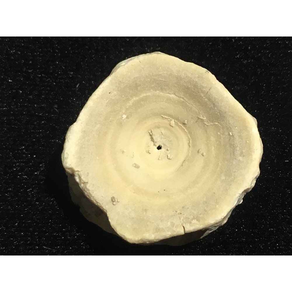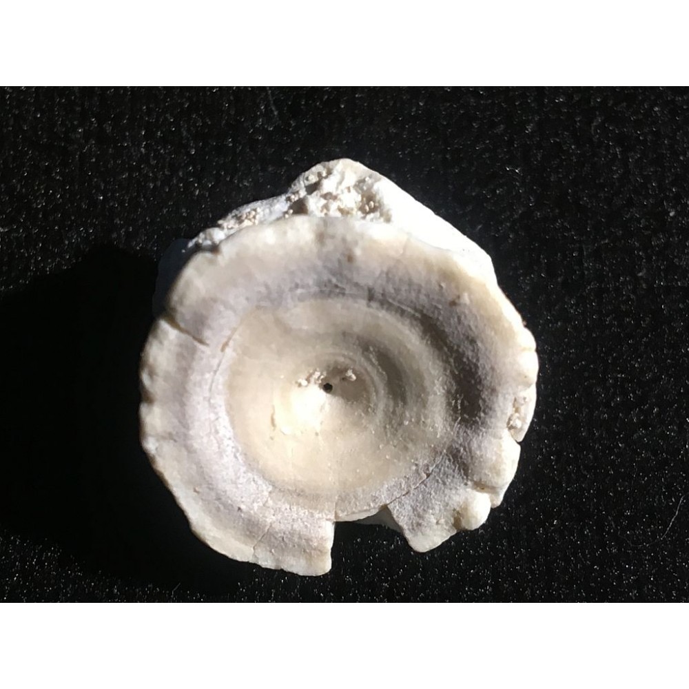 Fosilní obratel ryby z lokality Khourigba v Maroku. Stáří: křída (65 mil. let).