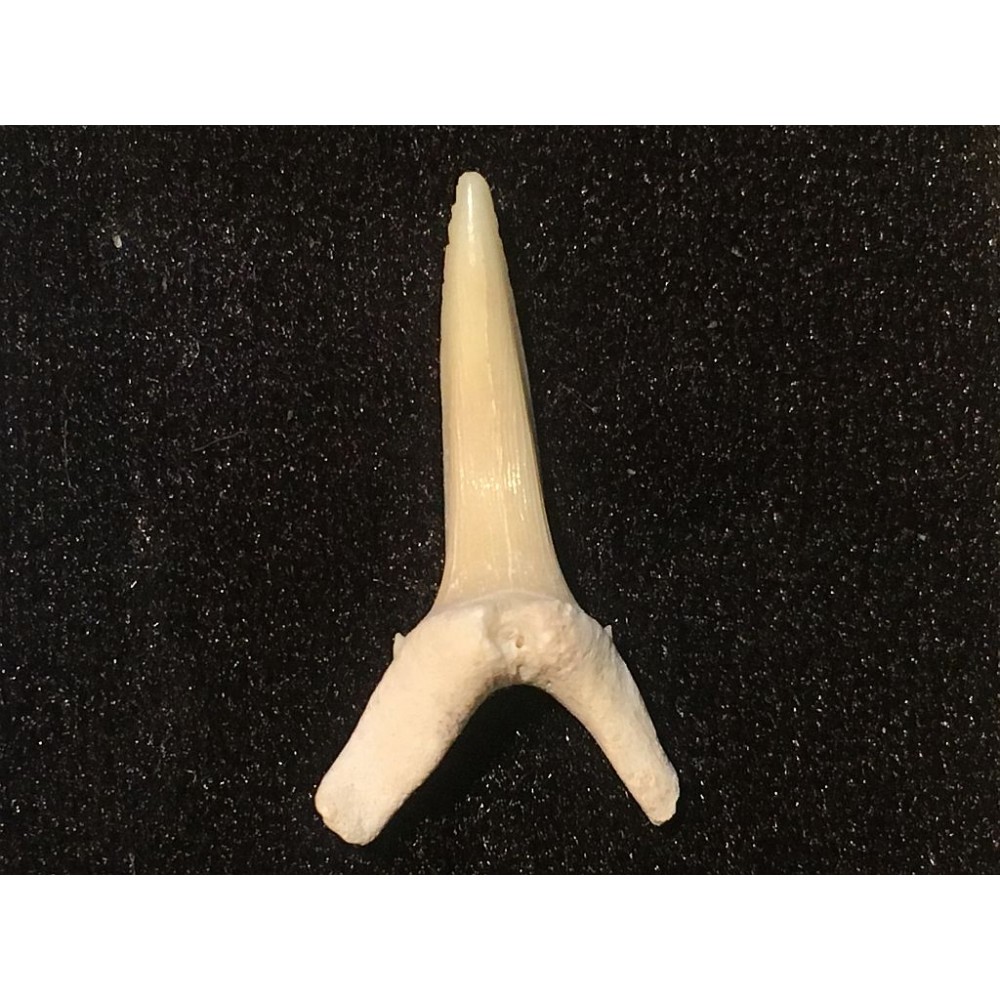 Fosilní zub žraloka Striatolamia macrota náležejícího k zaniklému rodu žraloků, kteří patřily do rodiny Odontaspididae. Žili v období terciéru (eocén) v období 61,7 až 10,3 mil.let. Velikost zubů je 25 mm. Lokalita: Oosterzele v Belgii.