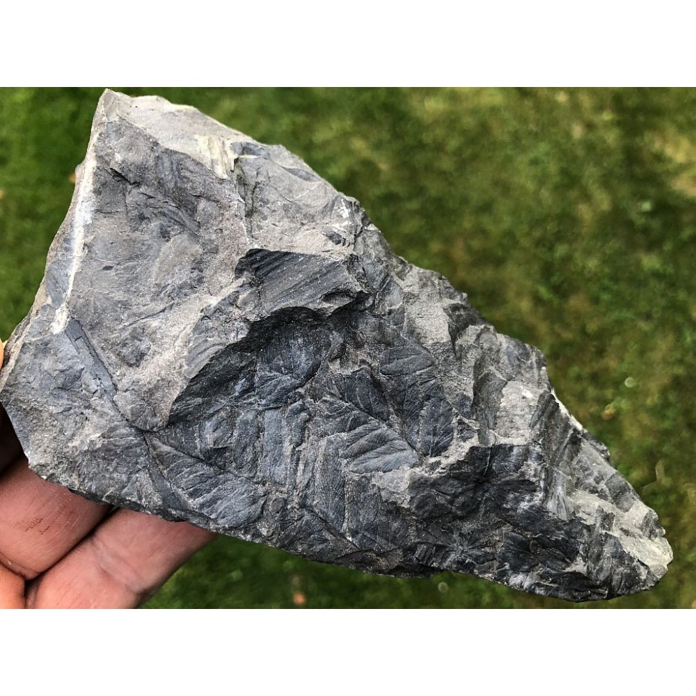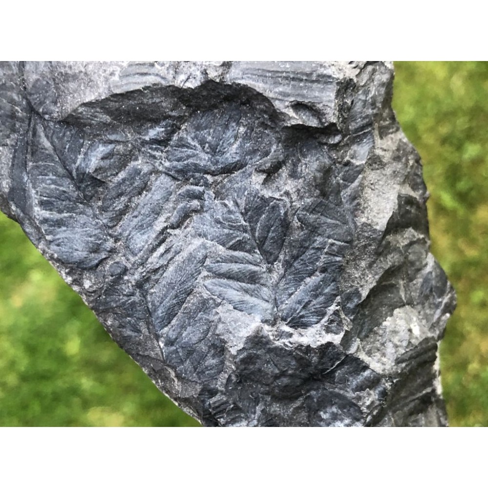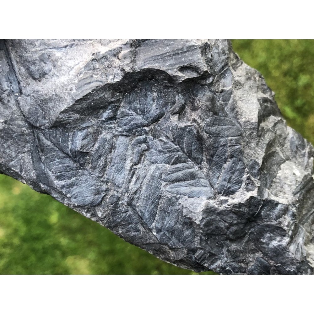 Otisky listů kapradiny Mariopteris sp. na vzorku z dolu Krupiński v obci Suszec ve Slezsku.