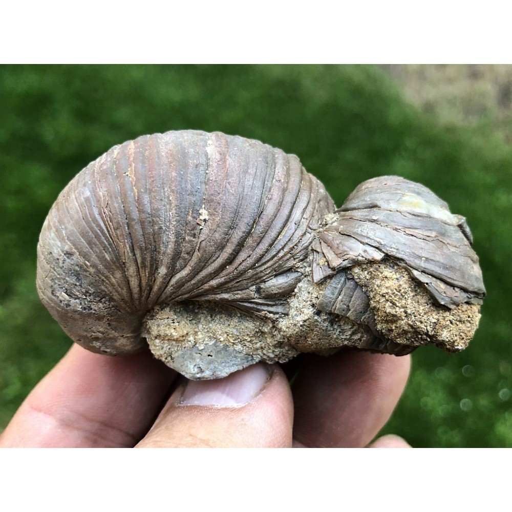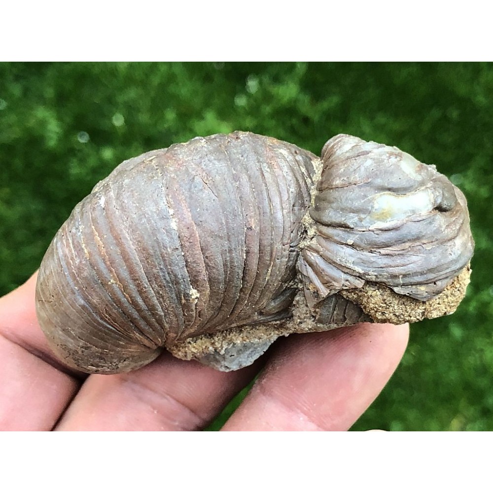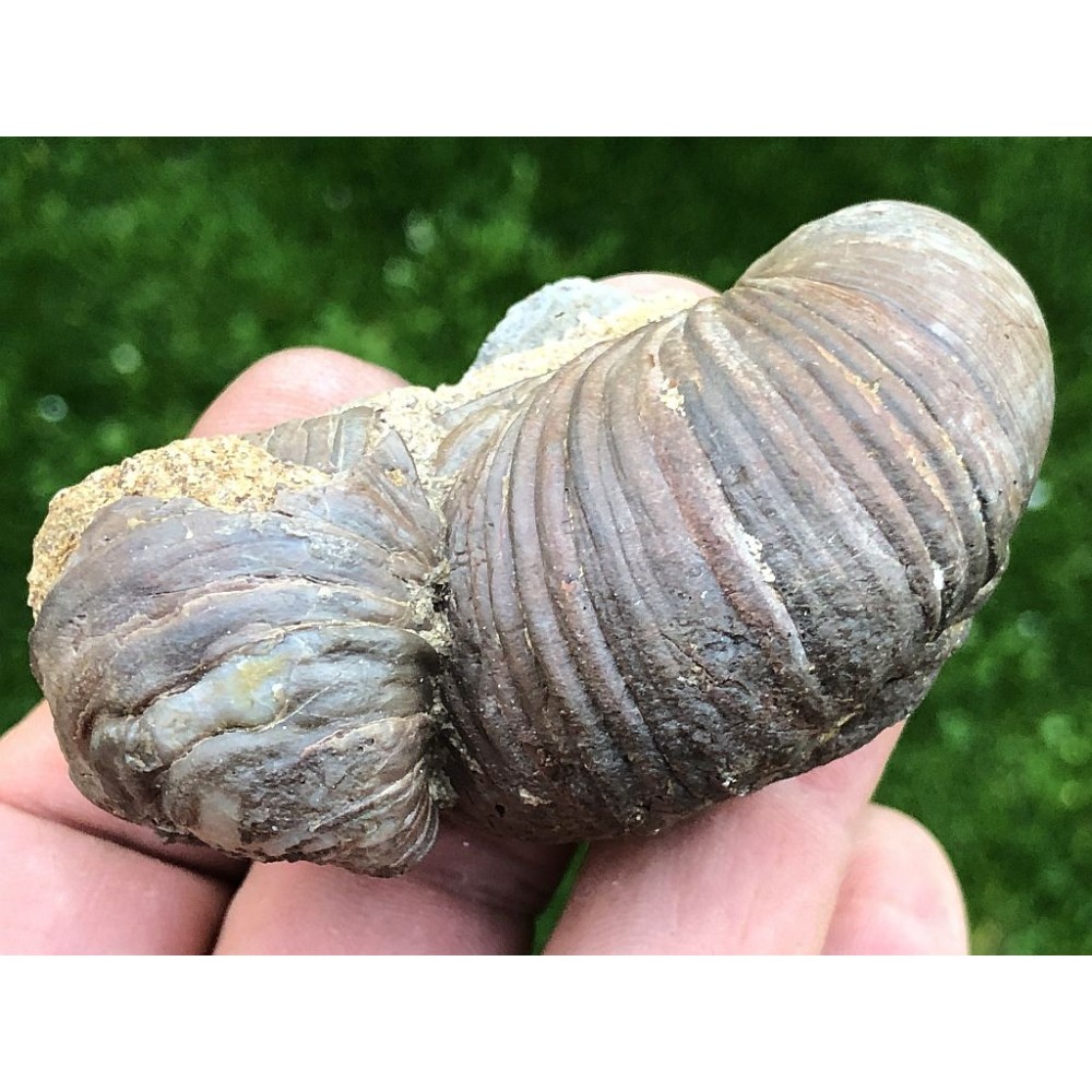 6 cm velká schránka vyhynulého mlže rodu Gryphaea z období eocénu. Vzorek pochází z Trossingenu nedaleko Villingen-Schwenningen v západním Německu.