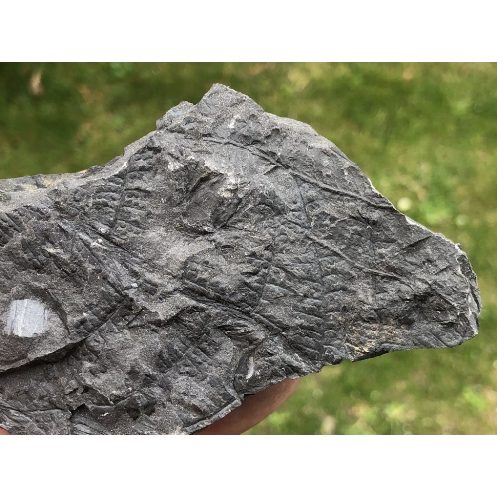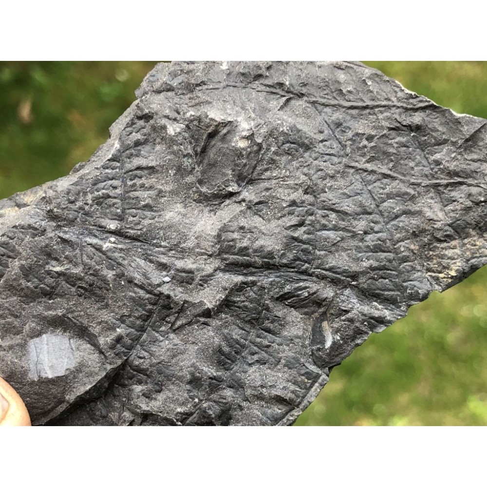Otisky listů liánovité kapradiny druhu Senftenbergia plumosa. Vzorek pochází z odvalu dolu ČSM u Karviné, uvádí se též Stonava.