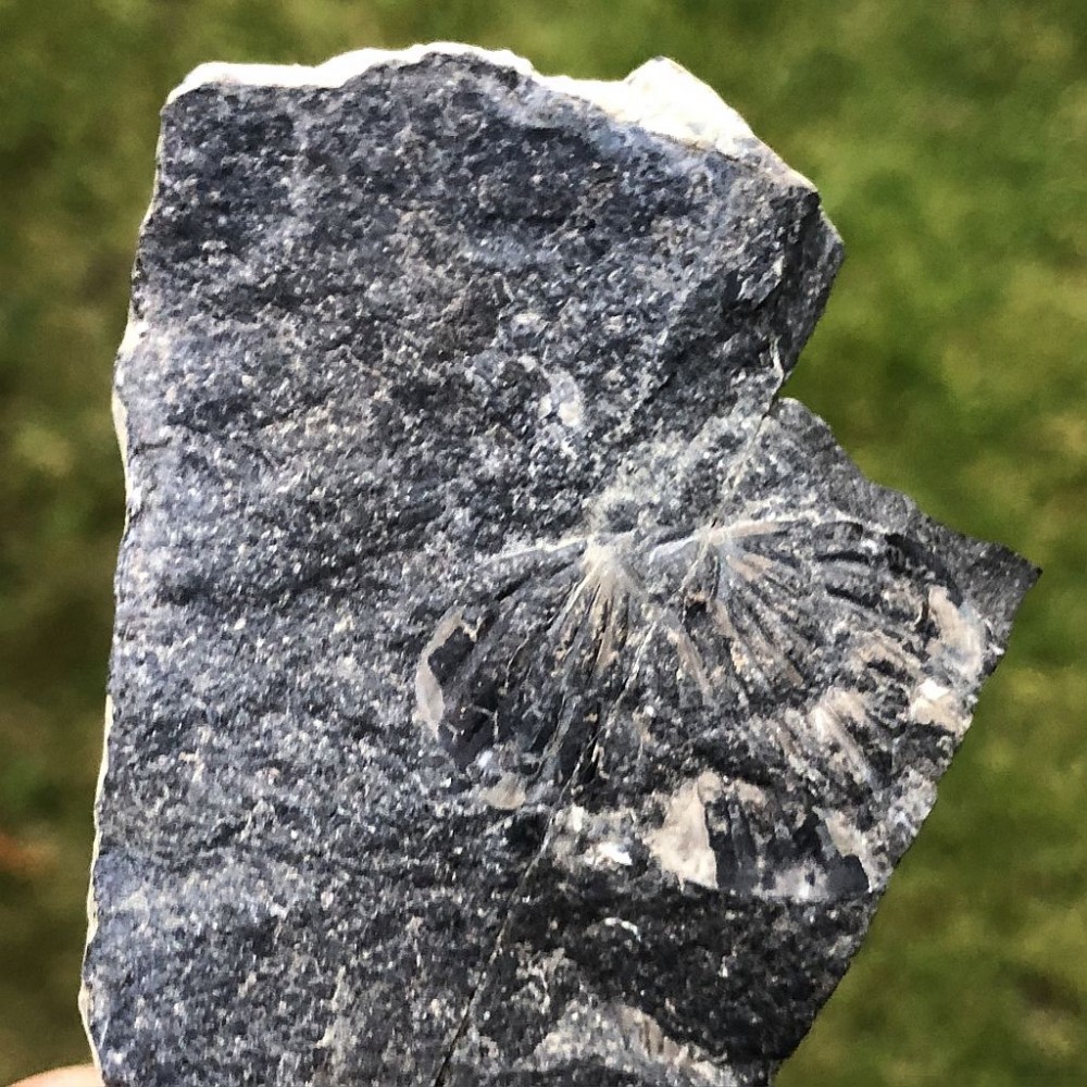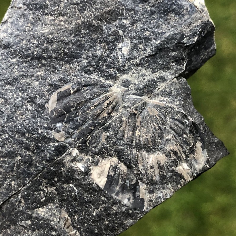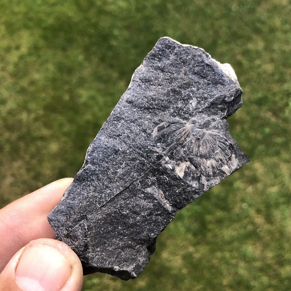 Ocasní štít trilobita druhu Spiniscutellum umbeliferum na vzorku z lokality Praha - Lochkov. Spodní devon.