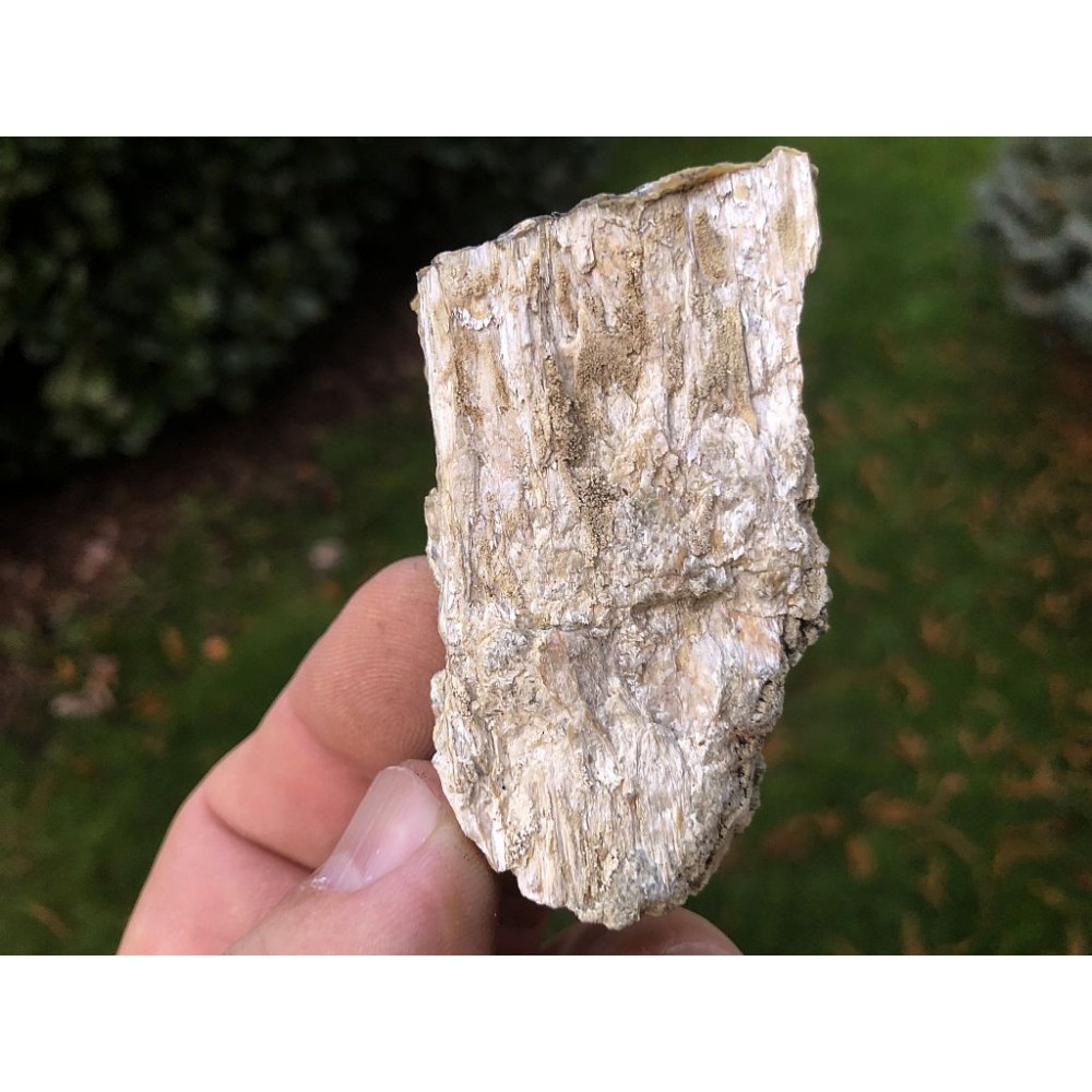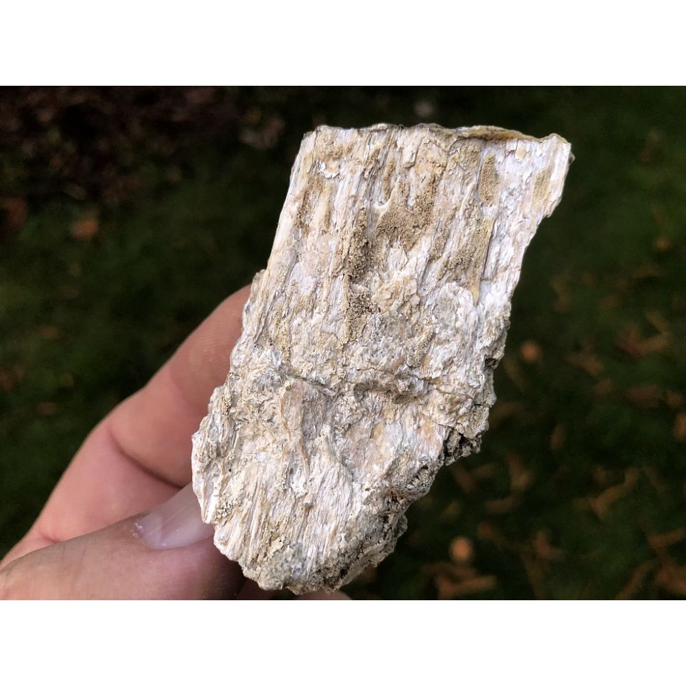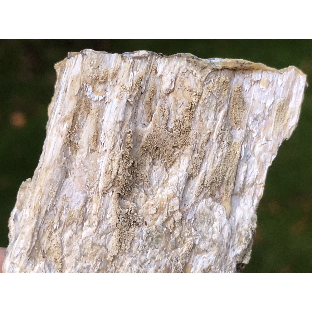 Vzorek chryzotilu (asbestu), který tvoří bílé, hedvábně lesklé, vláknité agregáty. Vzorek pochází z lokality Mříč nedaleko Křemže.