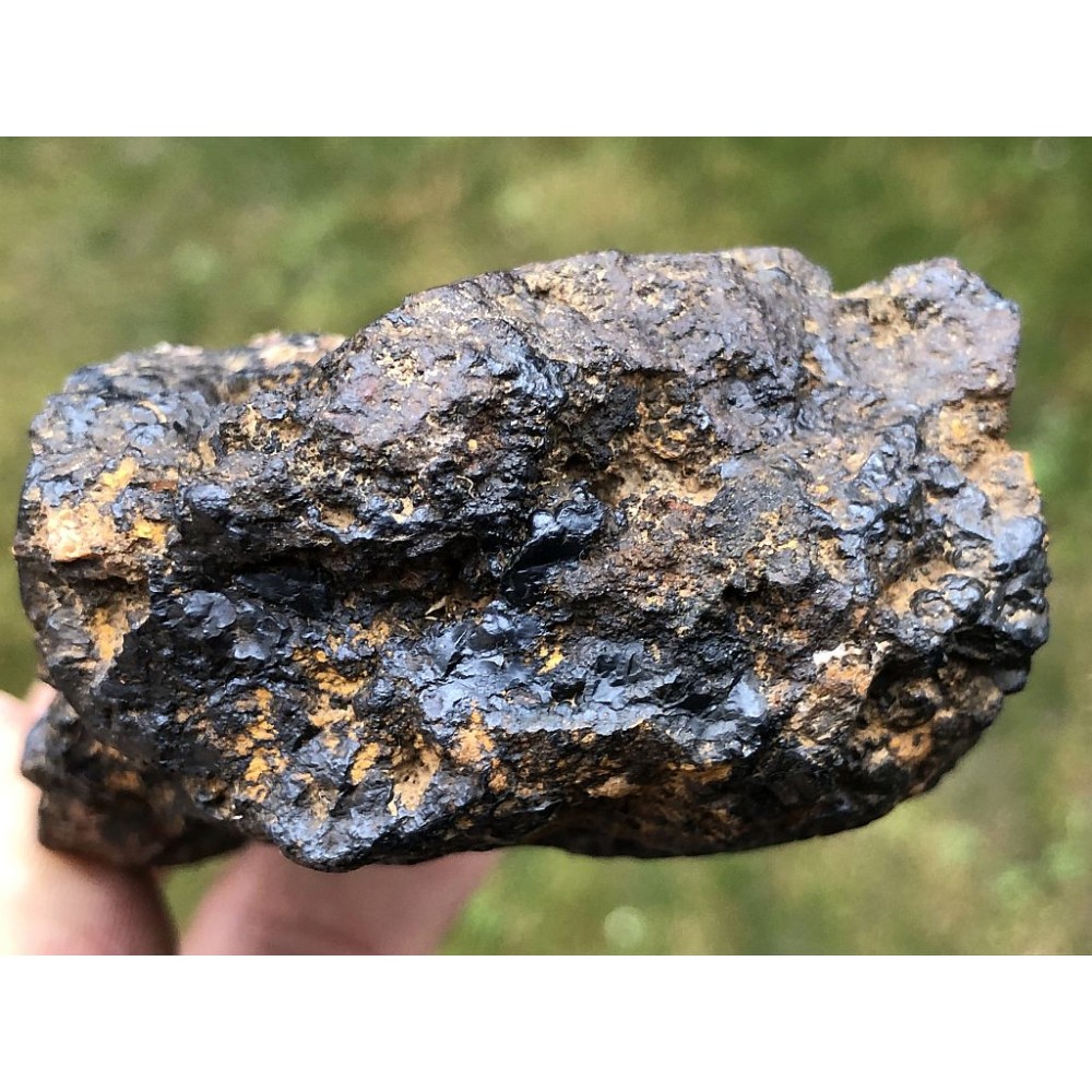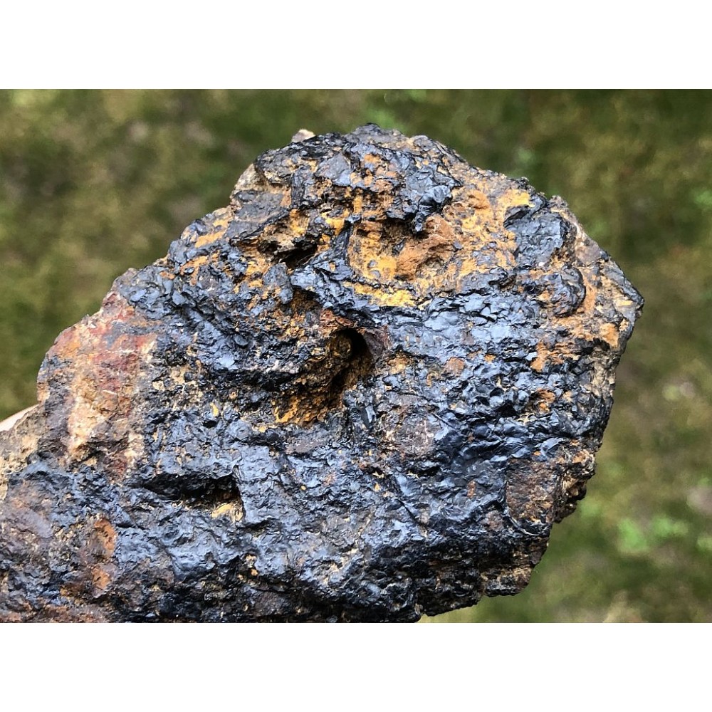 Šedočerný lithioforit vytvářející matné a mastně lesklé kůry až ledvinité agregáty na vzorku droby. Lokalita Olešná.