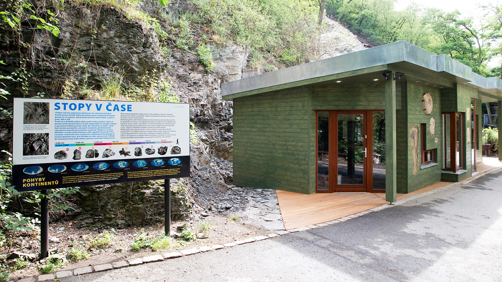 Cesta vedoucí od výběhů horských kopytníků ke Gočárovým domům v horní části zahrady prochází kolem skalního masivu tak těsně, že neumožňovala stavbu expozic se zvířaty. Dlouho proto nabízela nanejvýše příjemný výhled na Vltavu a město za ní. To se změnilo 31. března 2012, kdy byla slavnostně otevřena naučná paleontologická stezka pojmenovaná Stopy v čase.